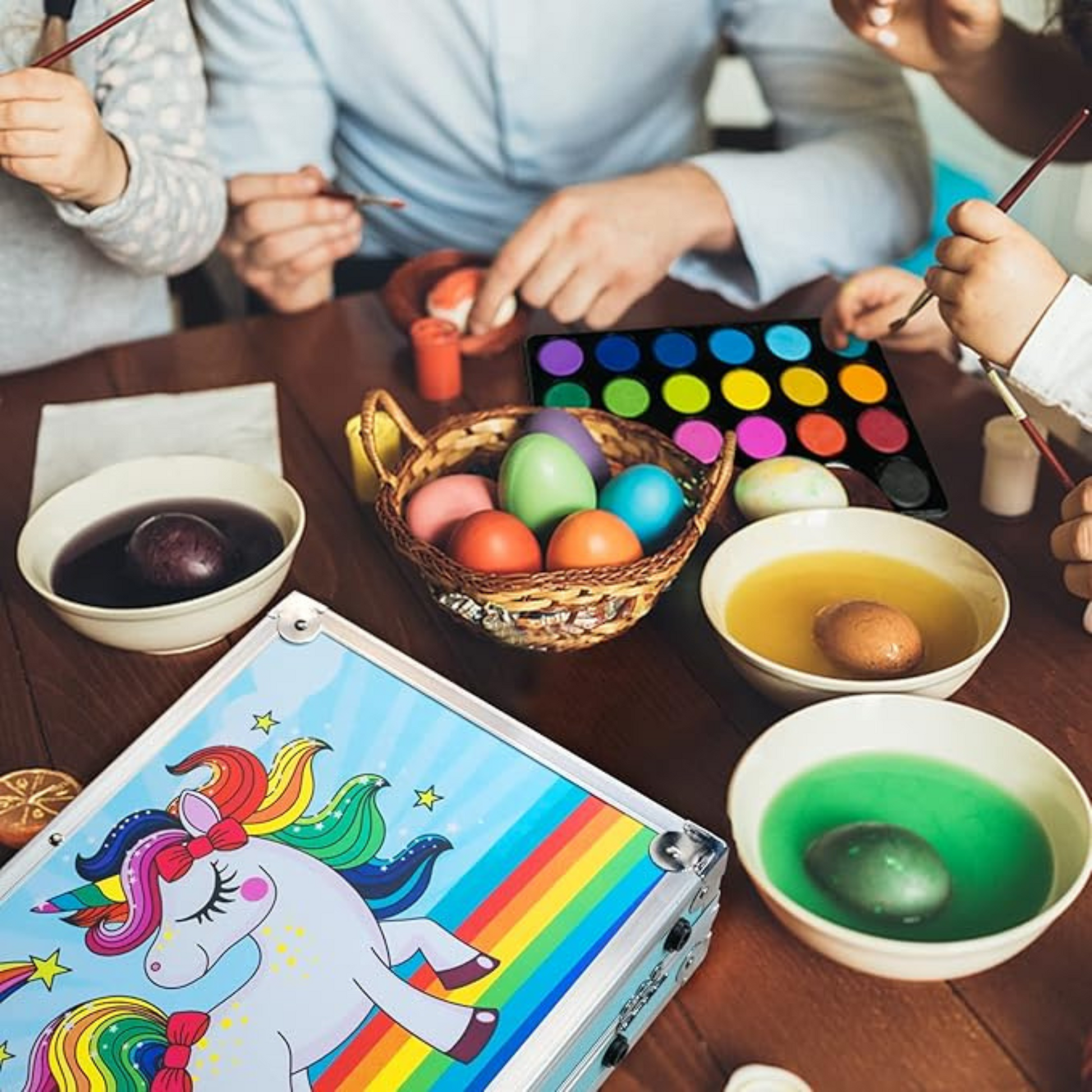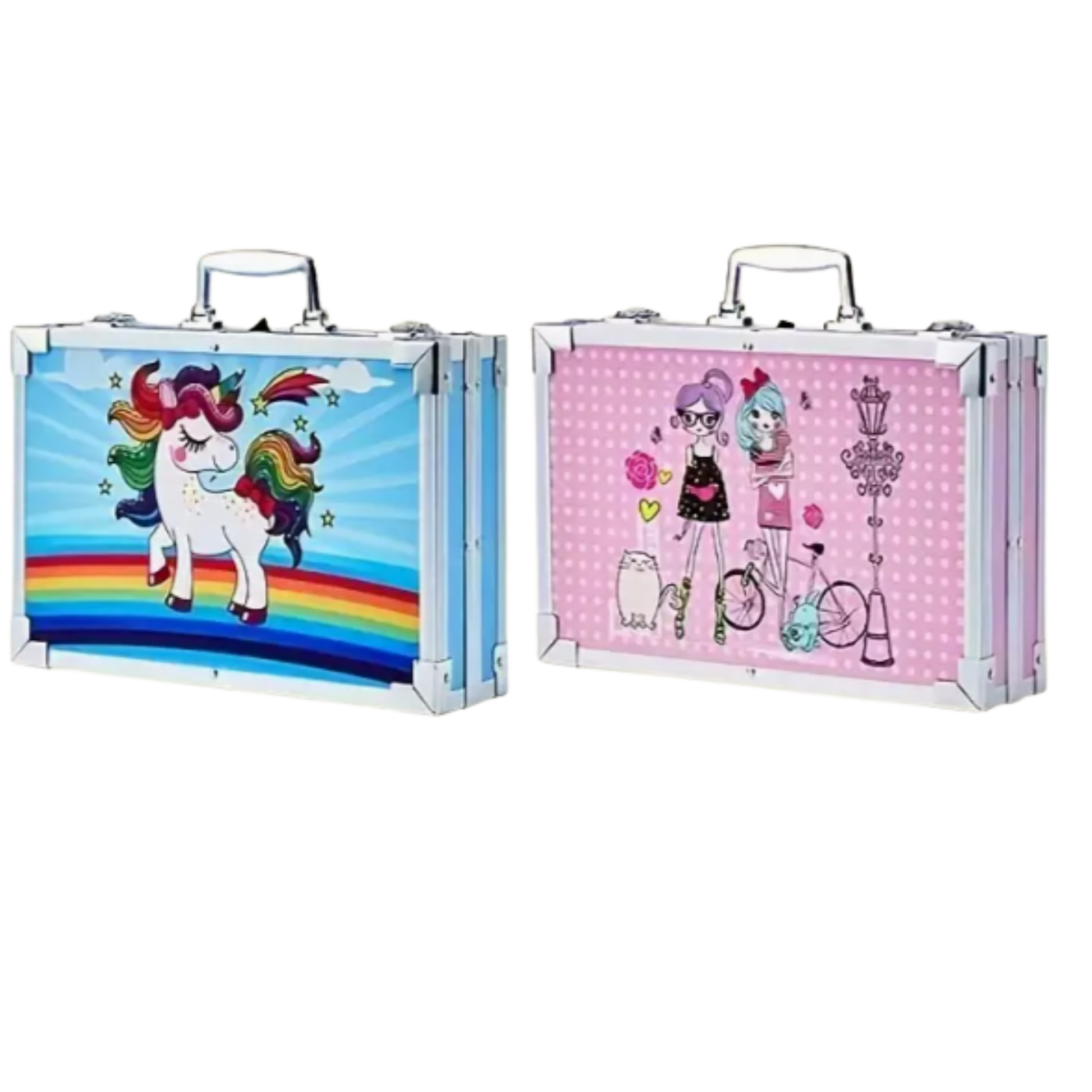 Este set incluye lápices, marcadores, acuarelas, crayones, pinceles y más, todo organizado en una práctica maleta portátil para crear en casa, la escuela o donde quieras.